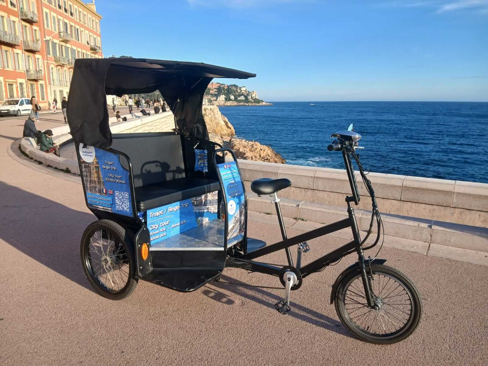 Découvrez Nice autrement grâce à Cyclo Niçois, votre service de vélo taxi écologique et confortable. Que ce soit pour un transport pratique en centre-ville ou une visite guidée inoubliable, nos chauffeurs expérimentés vous accompagnent toute l’année.